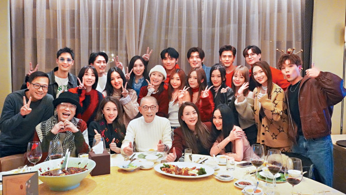 Emperor Entertainment held a Lunar New Year group dinner the night before, and the group's chairman Dr. Albert Yeung Sau Sing led its artists including Vincy Chan (Wing Yi), Bobby Auyeung Chun Wah, Catherine Chau Ka Yee, Irene Wan Bik Ha, Chan Kwok Bong, girl group VIVA, Angus Yeung Tin Yue, Arvin Tsang Ngo Fei, Ella Lam (Ai Nei), Aiden Hung Jor Sing and Hedy Chan (Hoi Yi) in attendance as well as manager Mani Fok Man Hei. Before dinner Fok Man Hei led a group of artists to send their New Year blessings to Yeung Sau Sing at his office; Yeung Sau Sing wished everyone fame and success and een asked Tsang Ngo Fei if the record was out. He also gave away God of Fortune lai see, which included a gold God of Fortune and a HK$ 1,000 bill. He said that this year everyone would definitely be rich and even taught a special way to welcome the God of Fortune. He said that the lai see money could be spent, but the God of Fortune had to be kept. Then the God of Fortune would come to the door.
