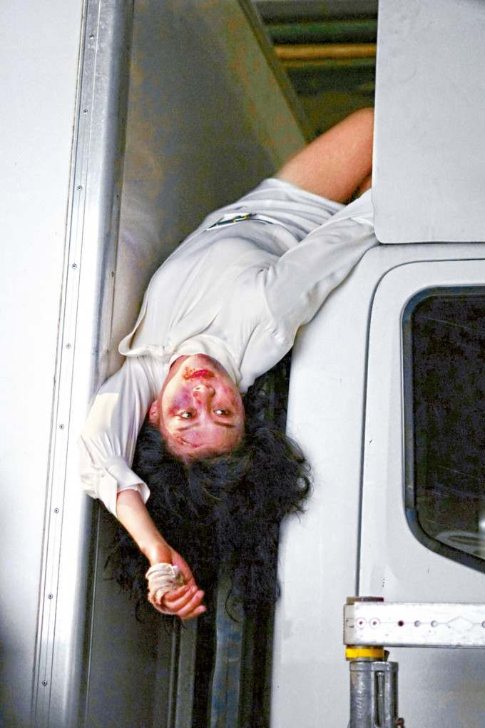The director, action director, and colleagues in the wire work team took sufficient safety measures for Fala's jump. Fala did some simple warm-up in advance, and then after learning about the location of the fall from the director she climbed on the roof of the car, and repeated the 180-degree waist bending action to squeeze into the narrow gap several times. Then combined with the expression of tragic death, she completed this terrifying shot after two or three takes. During the filming Fala watched the playback every time after completing a take, shooting her performance with her mobile phone to see if she needed any any improvement. Did she feel any discomfort after the waist bending performance? She smiled and said, "Luckily I had a few longans and half a bowl of congee before the shoot, only then did I have even more strength to bend my waist!" Although she bent for half a night, she and the director both were relieved to have finished this scene safely.