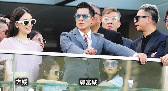 | Moka Fang in loose fitting clothing attend a horse racing event with Aaron Kwok |