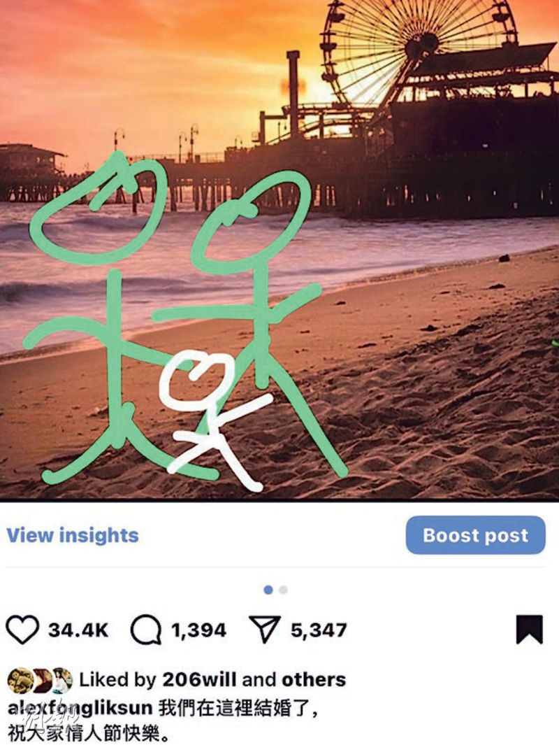 Alex Fong and Maple Yip wed in February courtesy of mingpao.com |