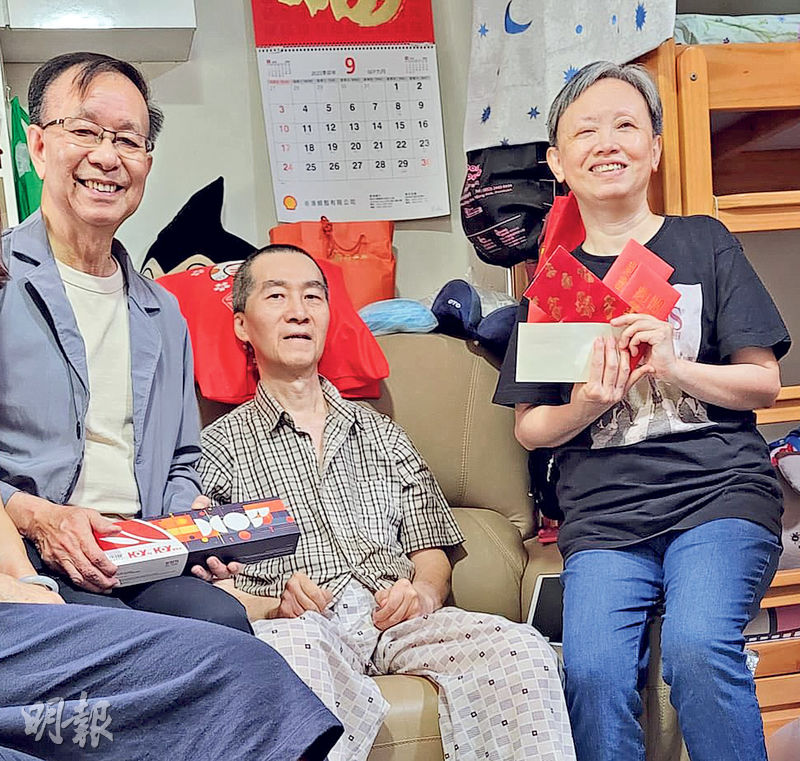| Tsang Sing Ming (left) has been concerned with Ng Bok Kwan's situation and once visited Ng Bok Kwan at home. Ng Bok Kwan's wife (right) was by his side |