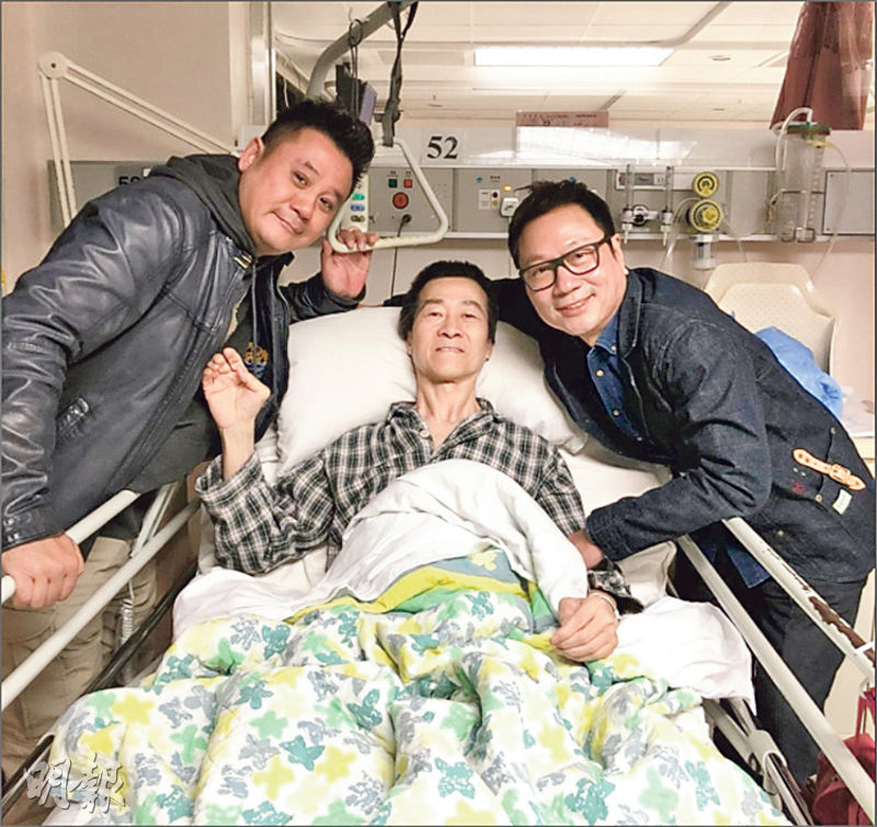 | Ng Bok Kwan was admitted to the hospital in 2018. Mak Cheung Ching (left) and Wayne Lai (right) visited to cheer for him courtesy of mingpao.com |