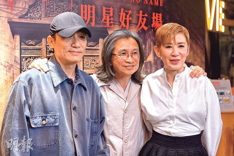 | Tony Leung Chiu Wai originally wants to quietly attend the screening, but Peter Chan and Sandra Ng capture them for a photo courtesy of mingpao.com |