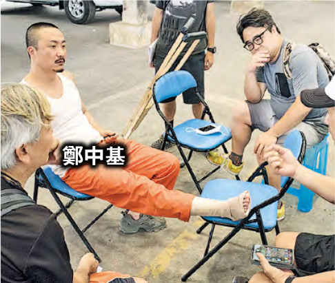 | Ronald Cheng works on a dramatic scene while injured courtesy of mingpao.com |