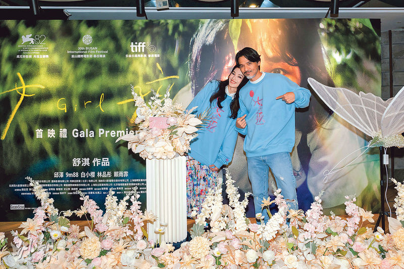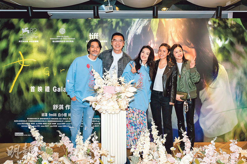 Shu Qi's first written and directed movie GIRL held its Hong Kong premiere in Tsim Sha Tsui the night before (4th). Her husband Stephen Fung Tak Lun wore the same promotional sweatshirt as his wife to support the film in a fully sweet gesture. The editor of the film William Chang Suk Ping, Kenny Bee (Chung Chun To), Ray Lui Leung Wai, Candy Yu On On and other friends in the business arrived to show their support, but did not accept an interview. Shu Qi laughed and said that the box office pressure of a first timje director was high, and she would have to wait 10 years to direct again. She revealed that Fung Tak Lun has once questioned her.