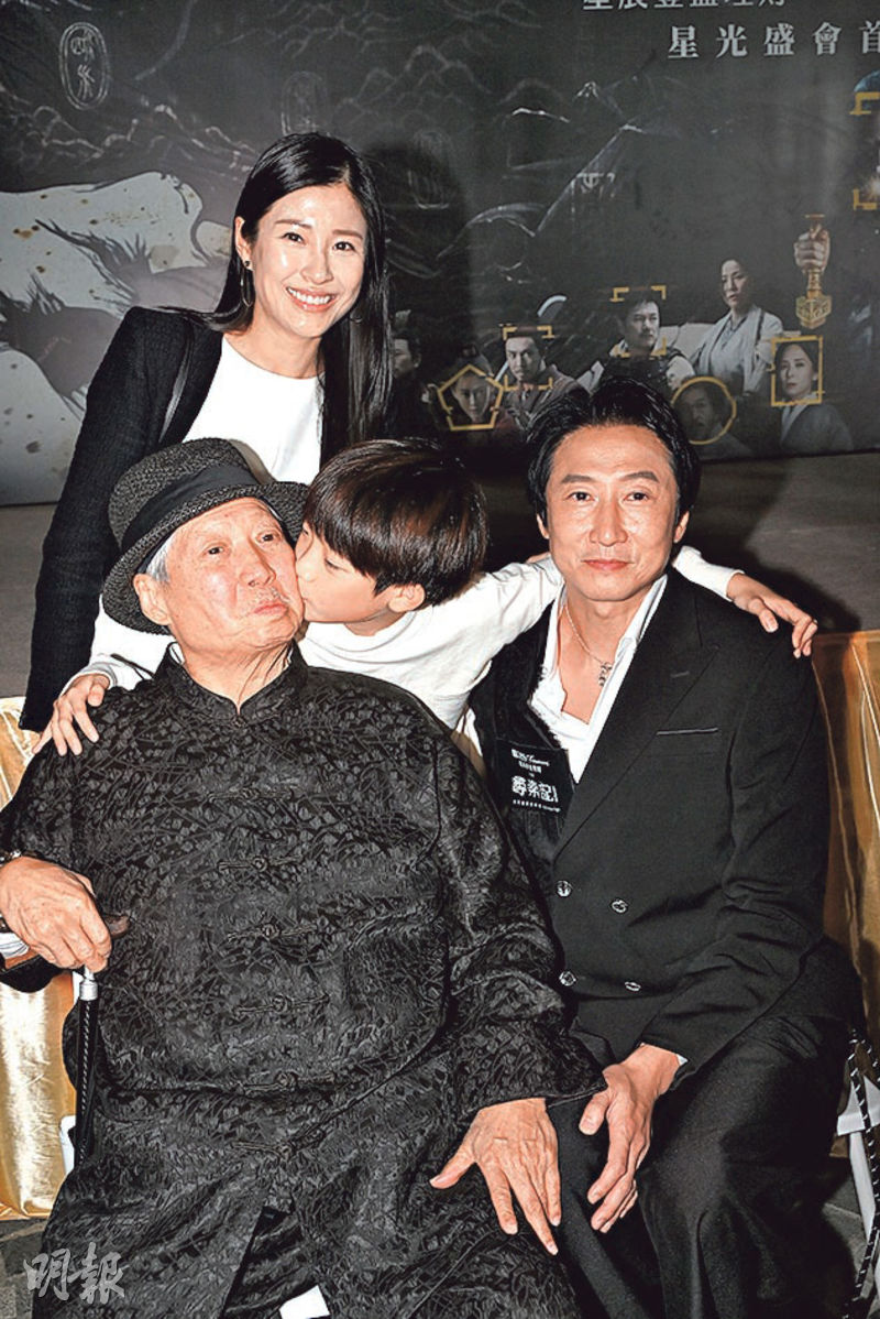 | Janet Chow brings younger son JT to support her father-in-law Sammo Hung and husband Timmy Hung. JT kisses Grandpa in a warm scene. |