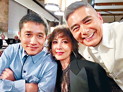Tony Leung Chiu Wai, Carina Lau and Chow Yun Fat take a rare photo together. courtesy of singtao.com |