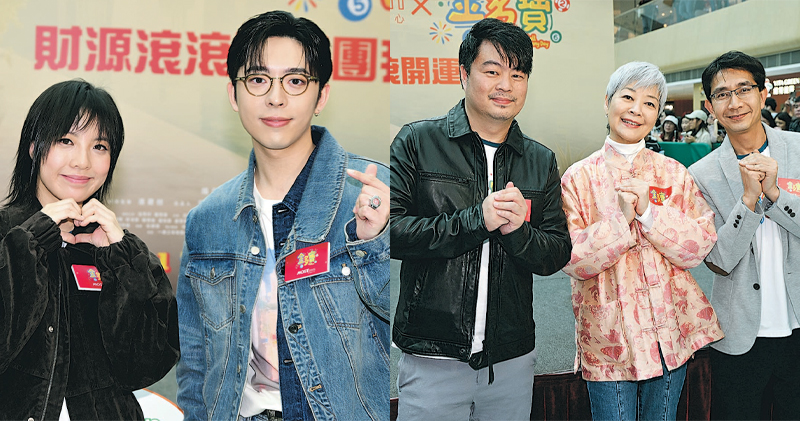 The actors of the Lunar New Year film THE SNOWBALL ON A SUNNY DAY (GUM DOR BO) including Edan Lui Cheuk On, Chung Suet Ying, Elaine Jin (Kam Yin Ling), Jiro Lee Sheung Ching, etc., together with director Philip Yung Tsz Kwong and producer Effy Sun Fei went to the shopping center yesterday to conduct a promotional activity, playing games with the public and distributing "Snowballs".