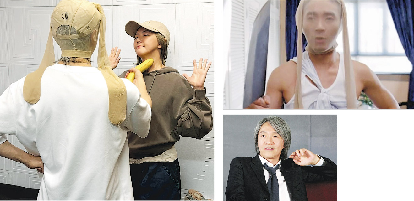 Chow Sing Chi and Sun Yanzi jointly posted a post on social platforms yesterday to reprise the scene of ALL'S WELL ENDS WELL; in the photo Chow Sing Chi was seen with his back to the camera, wearing nude- colored pantyhose over his head, holding a banana as a pistol and pointing at Sun Yanzi's neck; Sun Yanzi cooperated and raised her hands in a gesture of surrender, but she could not hide the smile on her face. Chow Sing Chi humorously wrote in the post, "Stefanie Sun's concert pre- sale was sold out, and the world has forced me to rob concert tickets. Children should not try this at home."